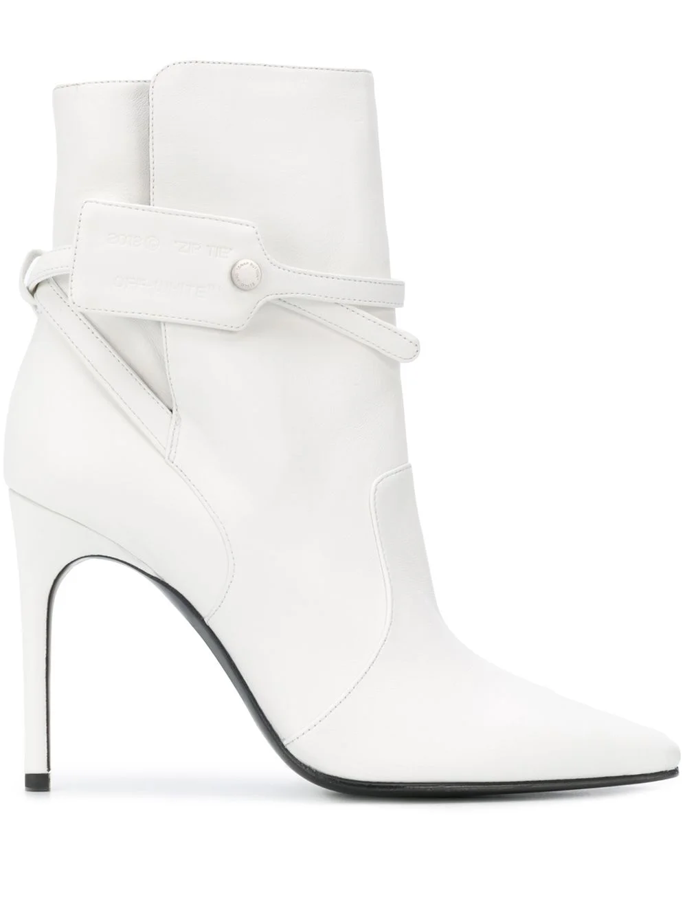 security-tag ankle boots They usually say, "good boots will take you good places". Well, if that is true, then these white boots will take you to the best places ever. Why, you ask? Well, they're from Off-white, obviously. Highlights - White - Leather - Pointed toe - Ankle-length - Snap fastening - Mid heel - Tonal signature security tag Made in Italy Composition Outer: Leather 100% Lining: Leather 100% Sole: Leather 100%