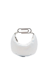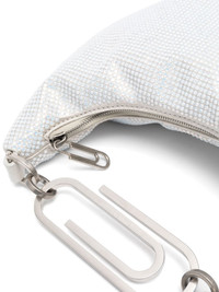 sequinned mini bag Off-White's mini bag is decorated with scores of blue sequins that glitter from all angles. The light blue hue complements the polished silver-tone hardware. The paperclip detail at the zip and top handle is a brand mainstay. Made in Italy Composition Outer: Calf Leather 100%, Viscose 72%, Silk 28% SIZE & FIT Model measurements Height 5 ft 11 in(1.8 m) Bust/Chest 33.07 in(84 cm) Hips 37.4 in(95 cm) Waist 25.19 in(64 cm) Measurement DEPTH 2.55 in(6.5 cm) HANDLE 1.18 in(3 cm) HEIGHT 6.29 in(16 cm) WIDTH 8.26 in(21 cm)