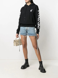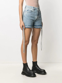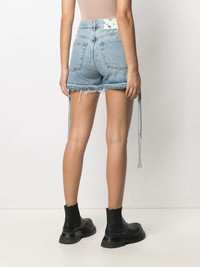 side tie fastening denim shorts Short and sweet. Keep spring/summer styling easy with these side tie fastening denim shorts from Off-White. Sun's out, legs out. Made in Italy Composition Outer: Cotton 100% Lining: Cotton 100% SIZE & FIT Model measurements Height 5 ft 10 in(1.77 m) Bust/Chest 34.25 in(87 cm) Hips 38.58 in(98 cm) Waist 26.37 in(67 cm) FittingInformation This piece fits true to size. We recommend you get your regular size Designed to be fitted at the waist and hips, loose over the leg Made with a mid-weight non-stretch fabric Washing instructions Machine Wash