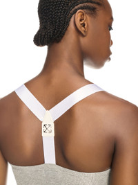This lurex tank top has a metallic ribbed finish and features a small stamp logo. The contrasting suspender-style straps host a metal arrow logo plaque on the reverse. Close fit. DETAILS - BETTY WEARS SIZE 38 HEIGHT: 5' 9” (179 CM) BUST: 30” (76 CM) WAIST: 24“ (60 CM) HIPS: 34” (87 CM) - Materials:Polyamide 11%, Spandex/Elastane 2%, viscose 76%, metal 11% - Code: OWAD25SS25JER0027272
