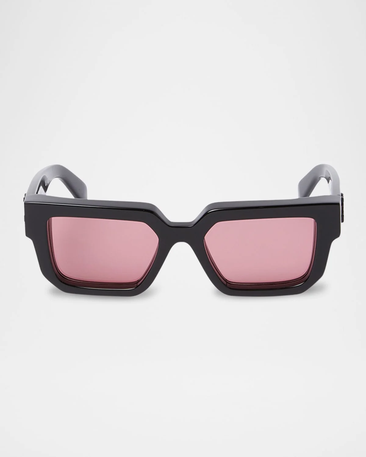 - Off-White "Silverstone" square acetate sunglasses - Eye/bridge/temple (in mm): 52-19-145 - Solid lenses - Saddle nose bridge - Thin, tapered arms - Arrow detail at temples - Acetate - 100% UVA/UVB protection - Made in Italy - Proposition 65 warning for California residents