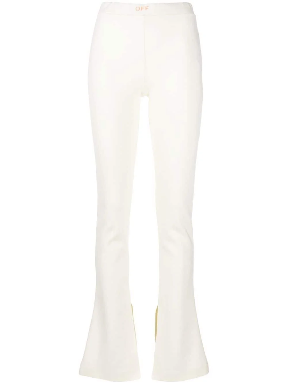 Sleek split leggings Off-White offers a bold contemporary style with these trousers. Imagined in a soft white hue, they are detailed with side slits for a modern finish. Made in Italy Composition Polyamide 86%, Elastane 14% SIZE & FIT Model measurements Height 5 ft 10 in(1.78 m) Bust/Chest 31.49 in(80 cm) Hips 35.03 in(89 cm) Waist 23.62 in(60 cm) FittingInformation This piece fits true to size. We recommend you get your regular size Designed to be fitted at the waist and through the thigh, loose from the knee Made with a mid-weight stretch fabric Washing instructions Machine Wash
