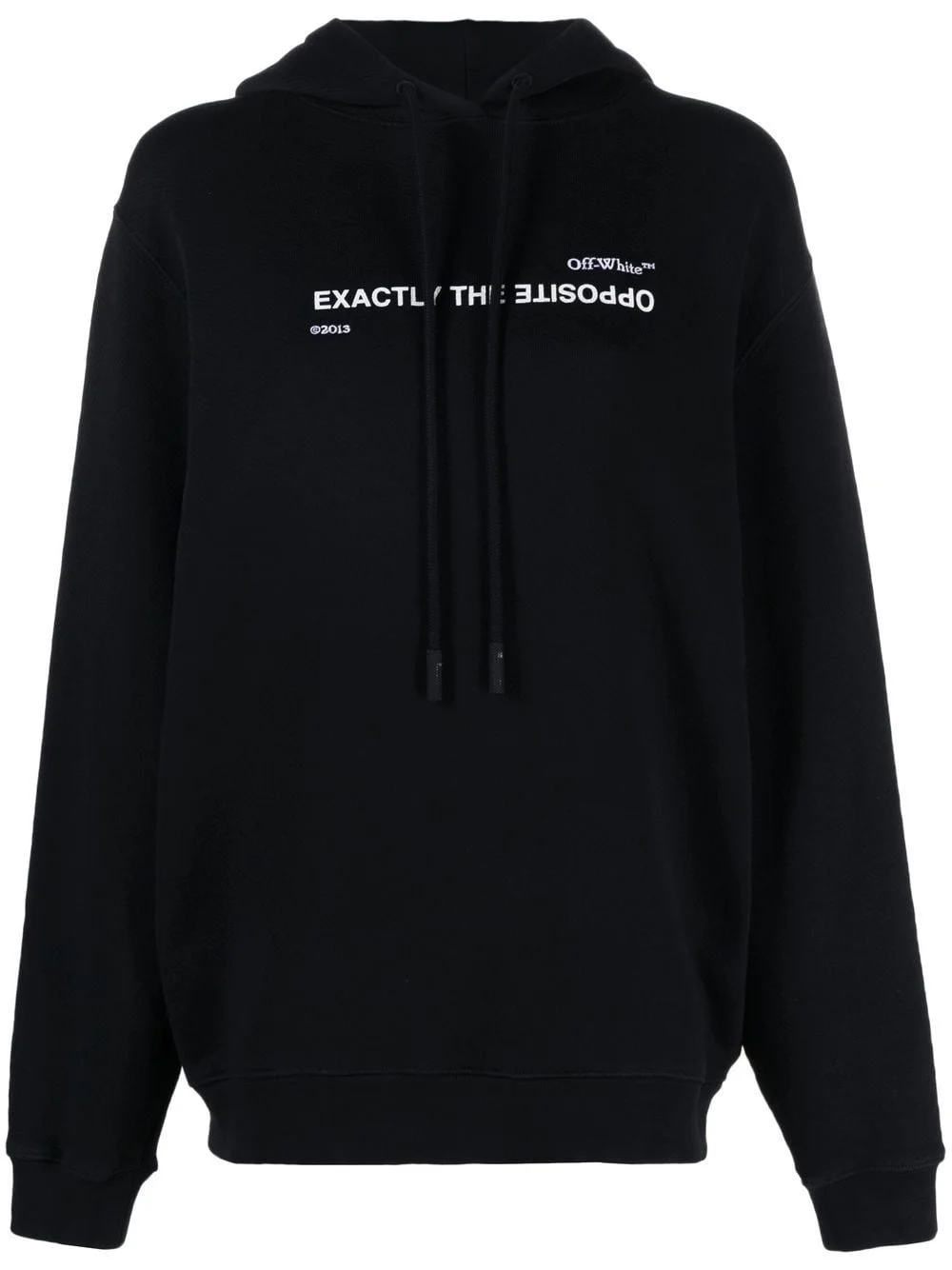 slogan-print drawstring hoodie This T-shirt displays Off-White’s ability to give simple designs a refined aesthetic through the addition of minimalist logo designs. The simple slogan print at the chest of this drawstring hoodie combines with the embroidered logo to lend the brand’s signature tastefulness to this piece. Imported Composition Cotton 100%, Polyester 100% SIZE & FIT Model measurements Height 5 ft 10 in(1.78 m) Bust/Chest 29.92 in(76 cm) Hips 34.64 in(88 cm) Waist 23.62 in(60 cm) FittingInformation This piece fits true to size. We recommend you get your regular size Cut for a loose fit Made with a mid-weight fabric Washing instructions Machine Wash