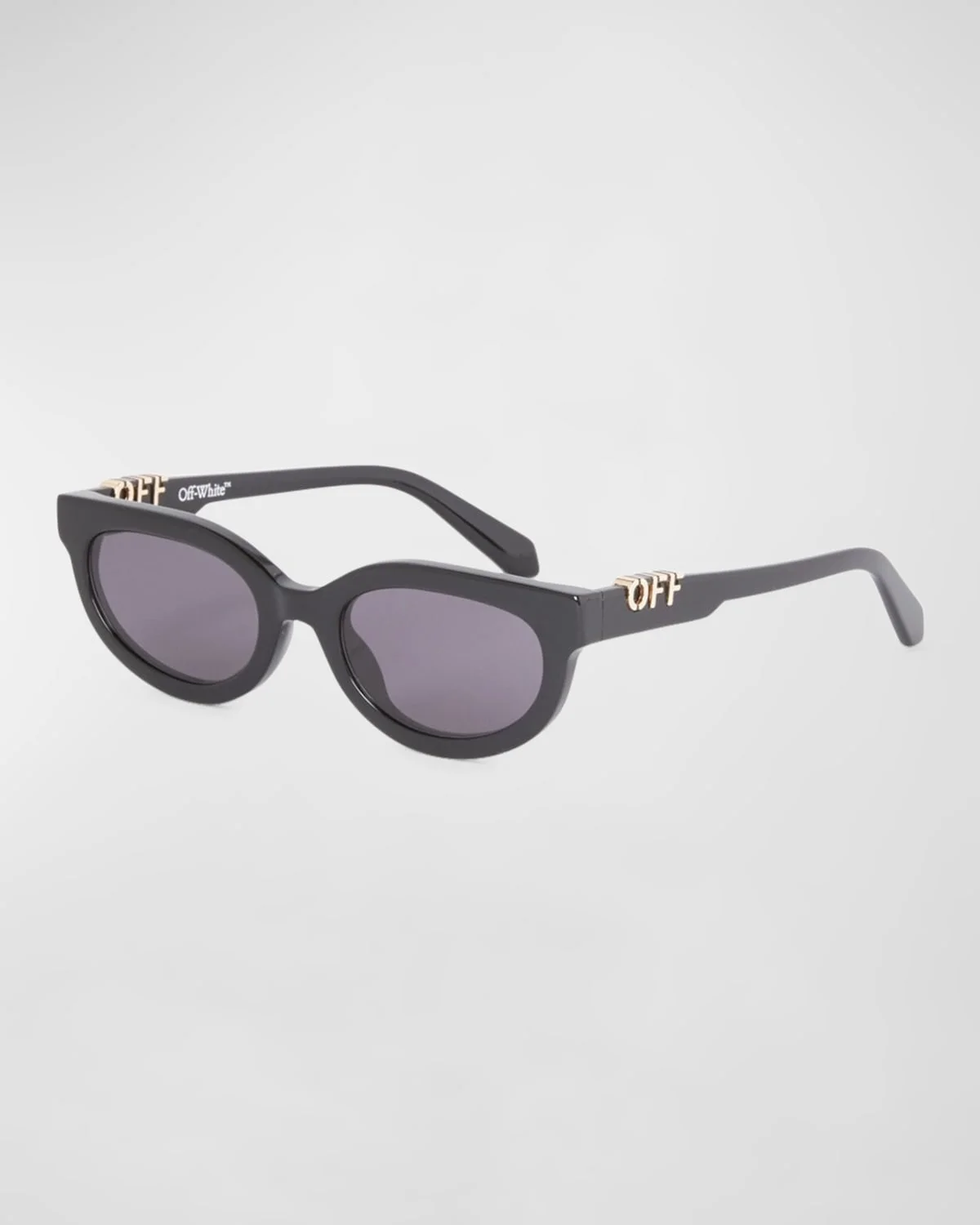 - Off-White "Sparks" cat-eye sunglasses in acetate - Lens/bridge/temple (in mm): 53-21-145 - Solid-color lenses - Metal signature on top of temples - Thin, tapered arms - 100% UVA/UVB protection - Made in Italy - Proposition 65 warning for California residents