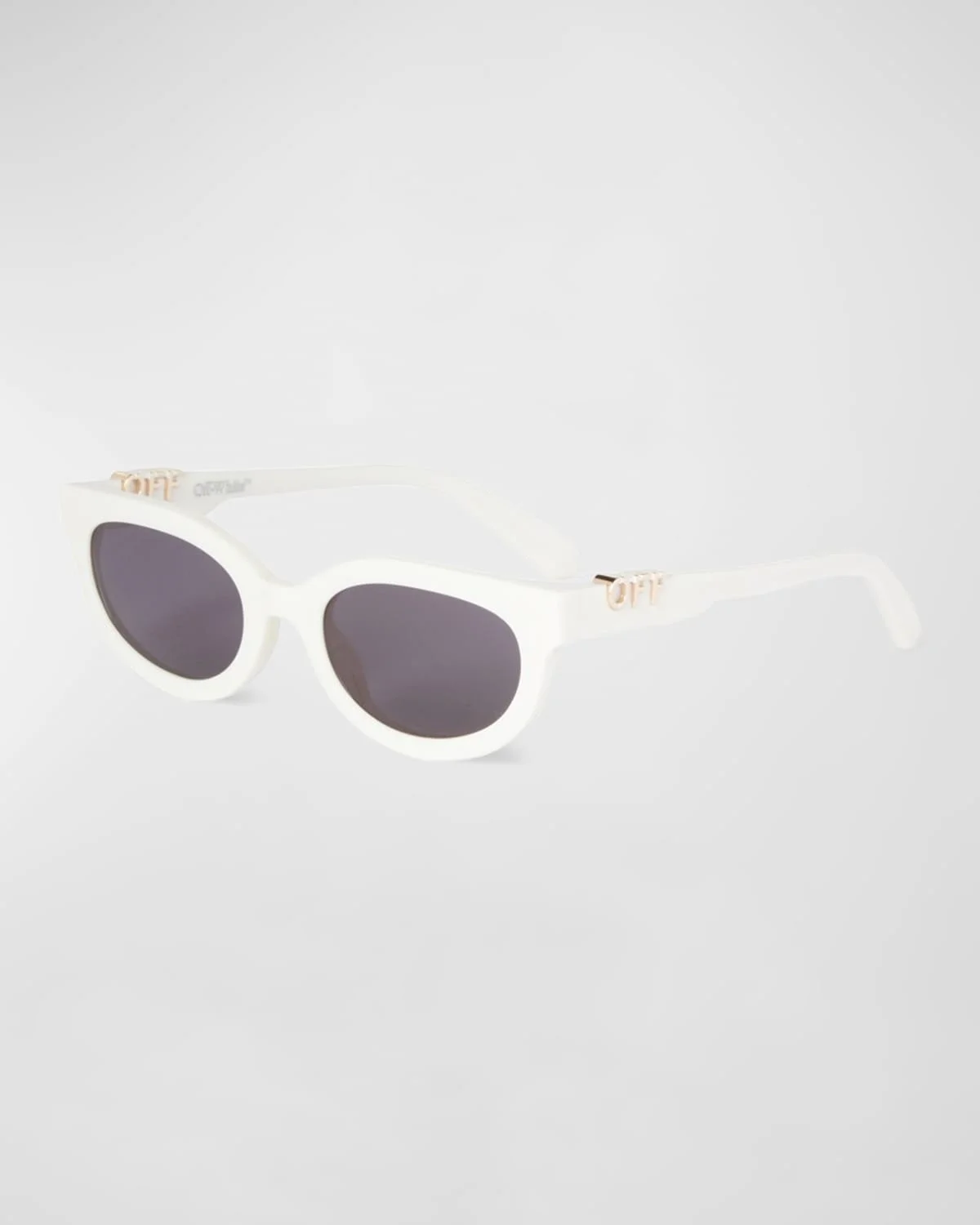 - Off-White "Sparks" cat-eye sunglasses in acetate - Lens/bridge/temple (in mm): 53-21-145 - Solid-color lenses - Metal signature on top of temples - Thin, tapered arms - 100% UVA/UVB protection - Made in Italy - Proposition 65 warning for California residents