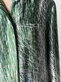 Spiral asymmetric shirt dress Still don't know what to wear at this weekend's party? This grey, green and blue Spiral asymmetric shirt dress from Off-White might be what you're looking for. And if you don't drink too much, it will be the only abstract thing about your evening. Say yes to the dress and no those shots. Featuring a pointed collar, a concealed front fastening, a logo to the chest, an asymmetric hem, draped details, long sleeves, button cuffs and a three-toned abstract print all-over. Made in Italy Composition Viscose 100% SIZE & FIT Model measurements Height 5 ft 10 in(1.77 m) Bust/Chest 35.03 in(89 cm) Hips 35.03 in(89 cm) Waist 23.62 in(60 cm)