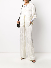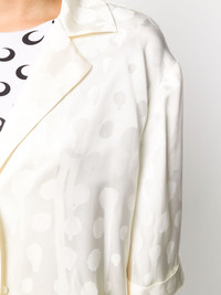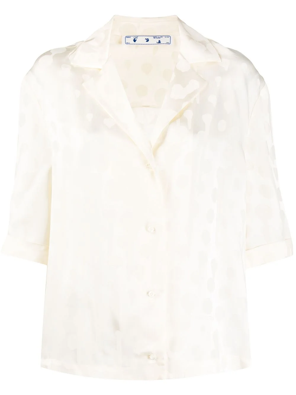 splatter-effect polka dot top White doesn't mean boring, especially when Off-White are involved. This top from Off-White has a notched collar and splatter-effect polka dots. Classic with a twist. Featuring notched lapels, a front button fastening and short sleeves. Made in Italy Composition Acetate 53%, Viscose 47% SIZE & FIT FittingInformation This piece fits true to size. We recommend you get your regular size Cut for a loose fit Made with a mid-weight non-stretch fabric Washing instructions Hand Wash