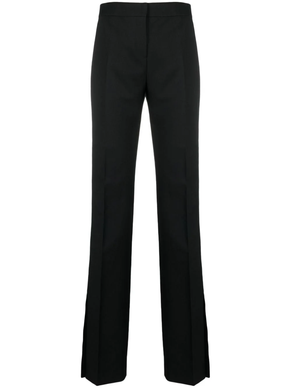 split-hem tailored trousers Off-White eschews traditional tailoring, presenting a modern vision for tuxedo trousers. Cut for a slim straight leg, the pair is adorned with classic satin stripes at each side, but falls to a long length that is accentuated by tall slits at the hem. Highlights - Black - Satin trim - High-waisted - Side hook and eye fastening - Concealed side zip fastening - Pressed crease - Two rear jetted pockets - Straight leg - Side slits Made in Italy Composition Outer: Polyester 100%, Acetate 77%, Viscose 20%, Elastane 3% Lining: Cotton 100% SIZE & FIT Model measurements Height 5 ft 10 in(1.78 m) Bust/Chest 33.46 in(85 cm) Hips 36.22 in(92 cm) Waist 23.22 in(59 cm) FittingInformation Designed with a flared hem, these trousers allow for a close fit at the waist with a slim fit over the leg and widening towards the hem Particularly long in length; consider your own measurements Made from a midweight non-stretch fabric This piece fits true to size – take your usual size Washing instructions Dry Clean Only