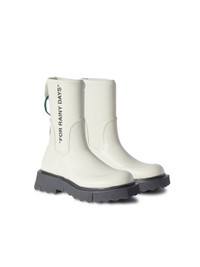 slogan-print ankle boots from OFF-WHITE featuring ankle-length, slogan print to the side, signature quote motif, signature Zip Tie tag, round toe, chunky rubber sole and white. MATERIALS Outer: 42% Polyester Sole: 100% Rubber Lining: 100% Polyester Outer: 58% Rubber FITTING Bust 0cm Height 0cm Hips 0cm Waist 0cm