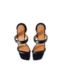 These 100% leather sandals feature two simple straps and stacked spring-style heels. Made in Italy. MATERIALS Sole: 100% Leather Outer: 100% Leather Lining: 100% Leather FITTING Bust 0cm Height 0cm Hips 0cm Waist 0cm