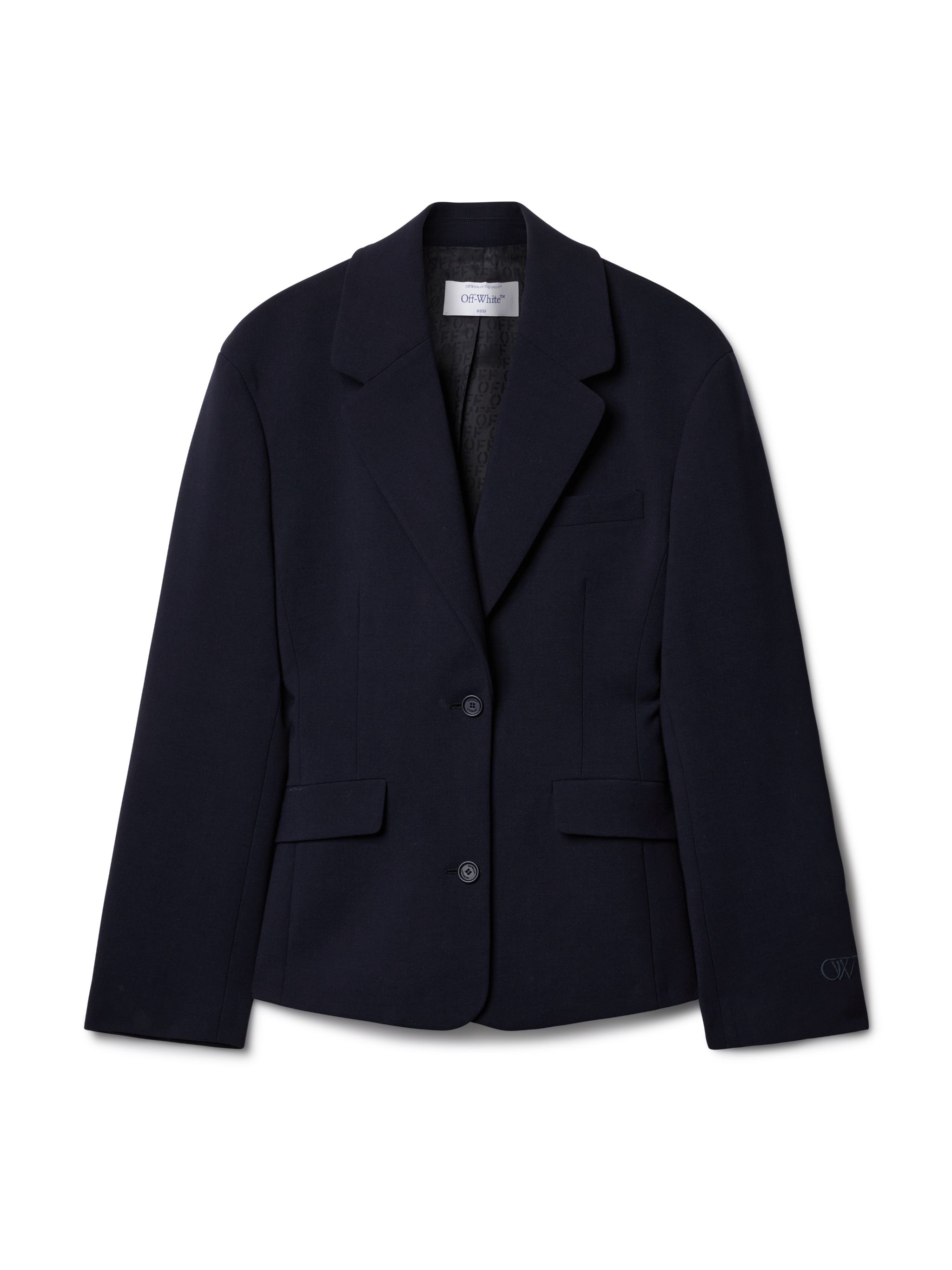 Black jacket with one button frontal closure.Two pockets details at side.Reinforced shoulders and spread collar. MATERIALS Lining: 100% Viscose 93% Virgin Wool 3% Polyamide 4% Elastane FITTING Model Elisa Nijman wears size S Height: 5’ 8" (179 cm) Chest: 32“ (81 cm) Waist: 23” (60 cm)