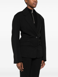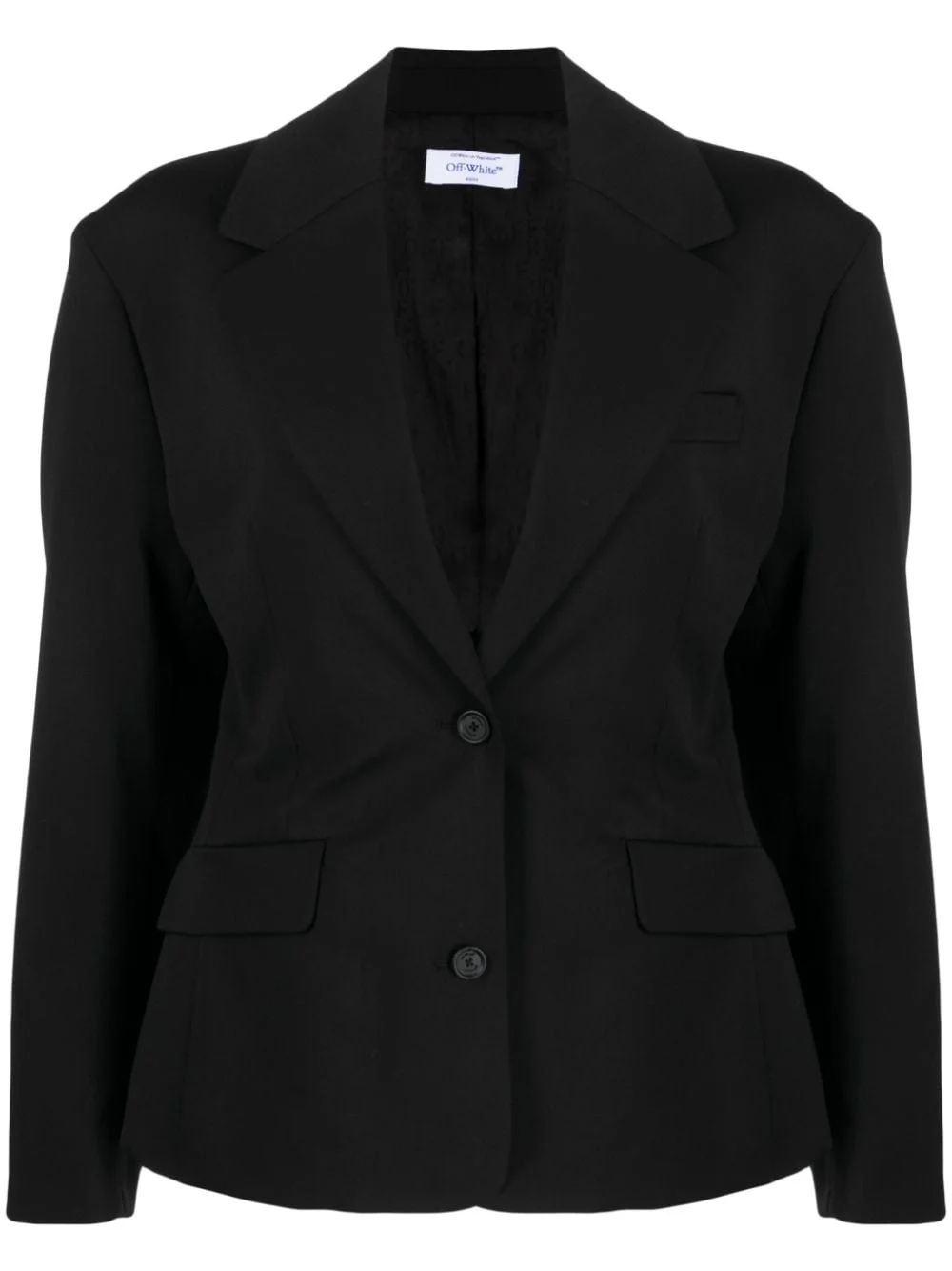 stretch-wool tailored blazer This blazer captures Off-White's edgy aesthetic with its rounded shoulders and tailored waist. It's crafted in Italy from stretch virgin wool and comes in a timeless black hue. Highlights - Black - Virgin wool blend - Stretch-design - Notched lapels - Long sleeves - Buttoned cuffs - Front button fastening - Chest welt pocket - Two front flap pockets - Straight hem - Tailored design - Full lining Made in Italy Composition Outer: Virgin Wool 95%, Spandex/Elastane 5% Lining: Cotton 100%, Viscose 100% SIZE & FIT Model measurements Height 5 ft 9 in(1.76 m) Bust/Chest 33.07 in(84 cm) Hips 38.58 in(98 cm) Waist 24.8 in(63 cm) FittingInformation Designed for a slim fit that sits just away from the body offering a close yet comfortable fit Made from a midweight fabric This piece fits true to size – take your usual size Washing instructions Dry Clean Only