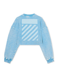 Cropped crewneck sweatshirt in soft cotton featuring signature graphic details. - Ribbed neckline - Long sleeves with ribbed cuffs - Front graphic text - Rear signature stripe motif - Relaxed silhouette DETAILS - Code: OWBA07DT25FLE0014001