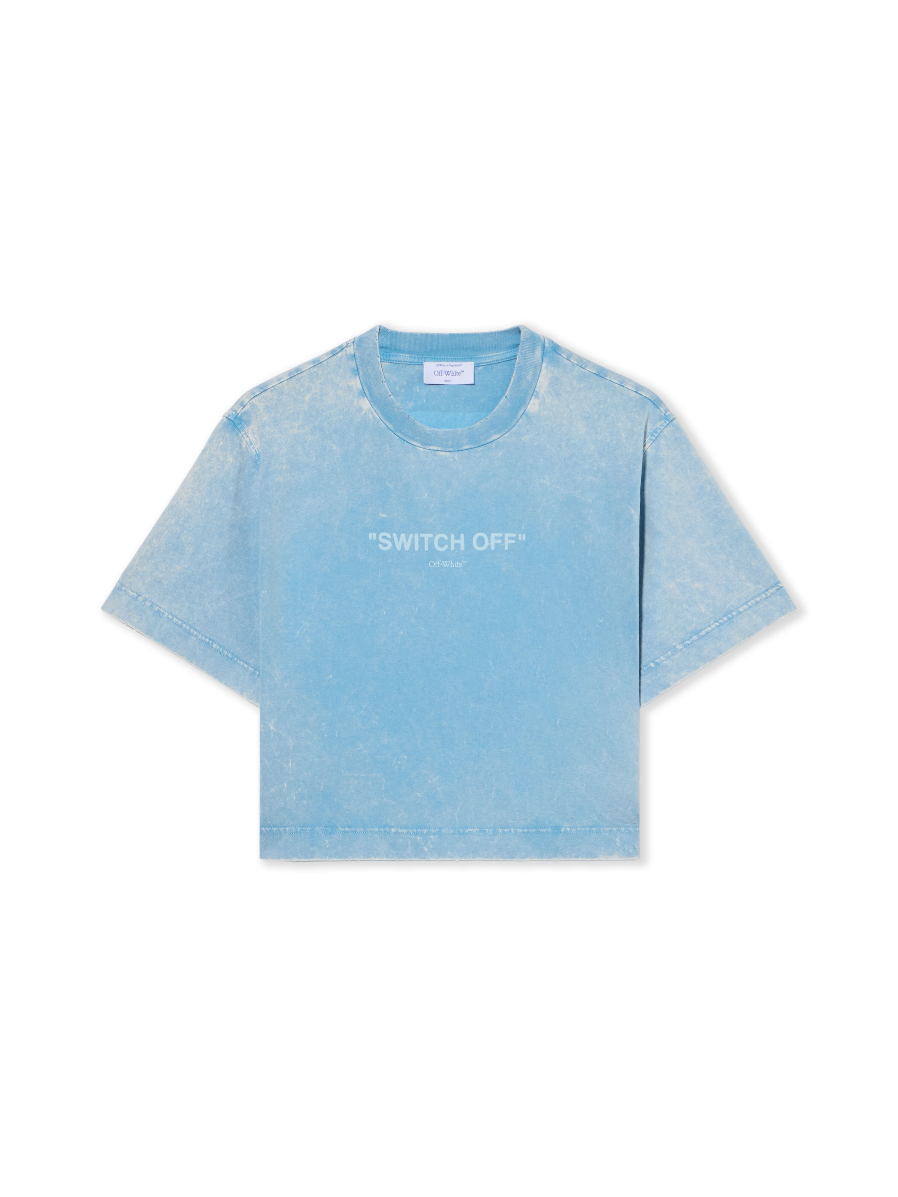 Cotton crop T-shirt with signature text motif and graphic back design. - Ribbed crew neckline - Short sleeves - Signature text motif at front - Graphic design at back - Distressed effect finish - Crop length silhouette DETAILS - Code: OWAA090T25JER0014001