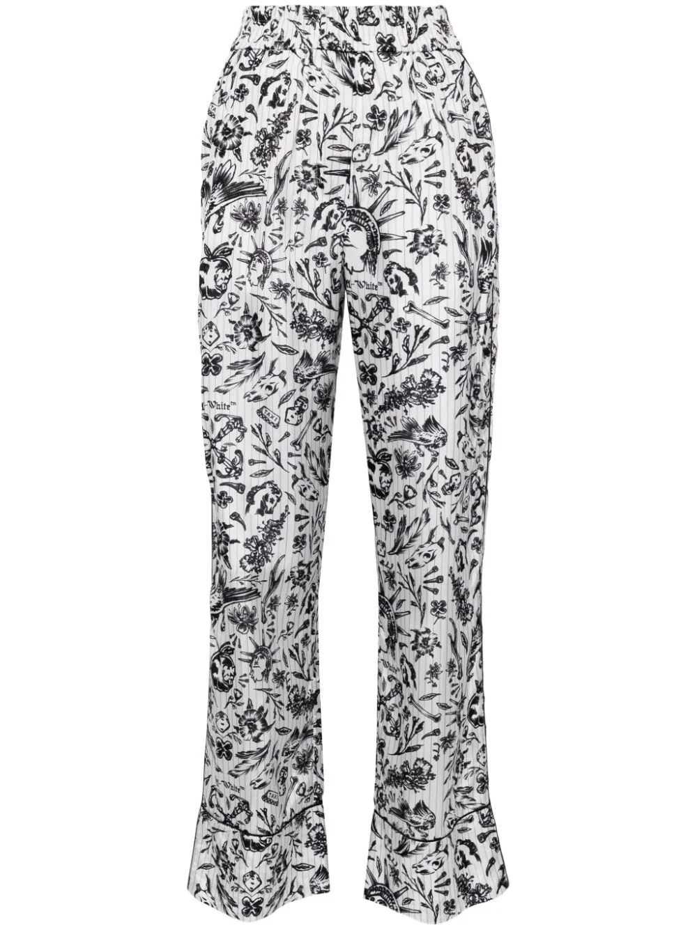 Tattoo-print pyjama pants Highlights - White/black - Tattoo print - Elasticated waistband - Two side slit pockets - Wide leg Made in Italy Composition Outer: Viscose 100% Lining: Viscose 52%, Cupro 48% SIZE & FIT Model measurements Height 5 ft 9 in(1.76 m) Bust/Chest 31.1 in(79 cm) Hips 35.03 in(89 cm) Waist 24.4 in(62 cm) FittingInformation Designed with a wide-leg cut, these trousers allow for a close fit at the waist and offer a loose and roomy fit over the leg The elasticated waist allows for a comfortable fit Made from a lightweight non-stretch fabric This piece fits true to size – take your usual size Washing instructions Dry Clean Only