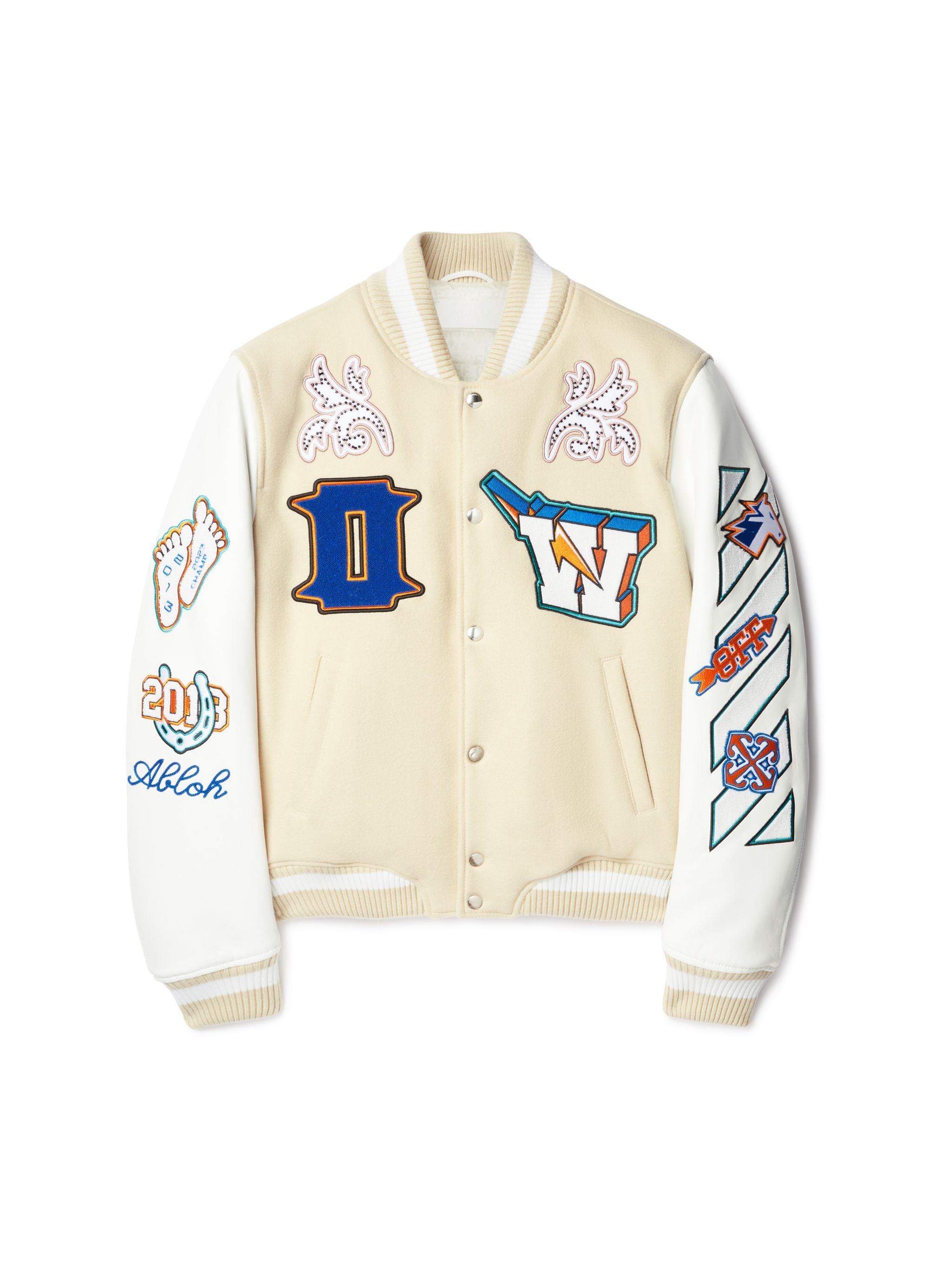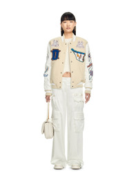 This varsity jacket is padded for a 90s feel. It is constructed from a wool blend with leather sleeves and features sportswear-inspired patches. Boxy fit. MATERIALS Outer: 75% Virgin Wool Outer: 25% Polyamide Outer: 100% Leather Lining: 100% Cotton Lining: 100% Viscose Outer: 100% Polyester FITTING Bust 84cm Height 179cm Hips 91cm Waist 62cm