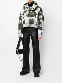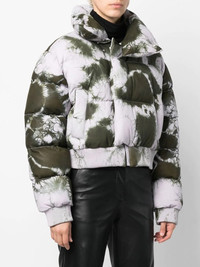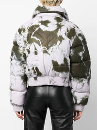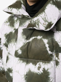 tie-dye puffer jacket Off-White adds a lively twist to outerwear with this jacket. In green and lilac hues, a tie-dye pattern details the down-feather piece for a cheerful finish. Imported Composition Lining: Feather Down 100%, Polyester 100%, Cotton 100%, Viscose 52%, Cupro 48% Outer: Leather 100% SIZE & FIT Model measurements Height 5 ft 9 in(1.76 m) Bust/Chest 33.46 in(85 cm) Hips 37.79 in(96 cm) Waist 25.59 in(65 cm) FittingInformation This piece fits true to size. We recommend you get your regular size Cut for a loose fit Made with a mid-weight non-stretch fabric Washing instructions Dry Clean Only
