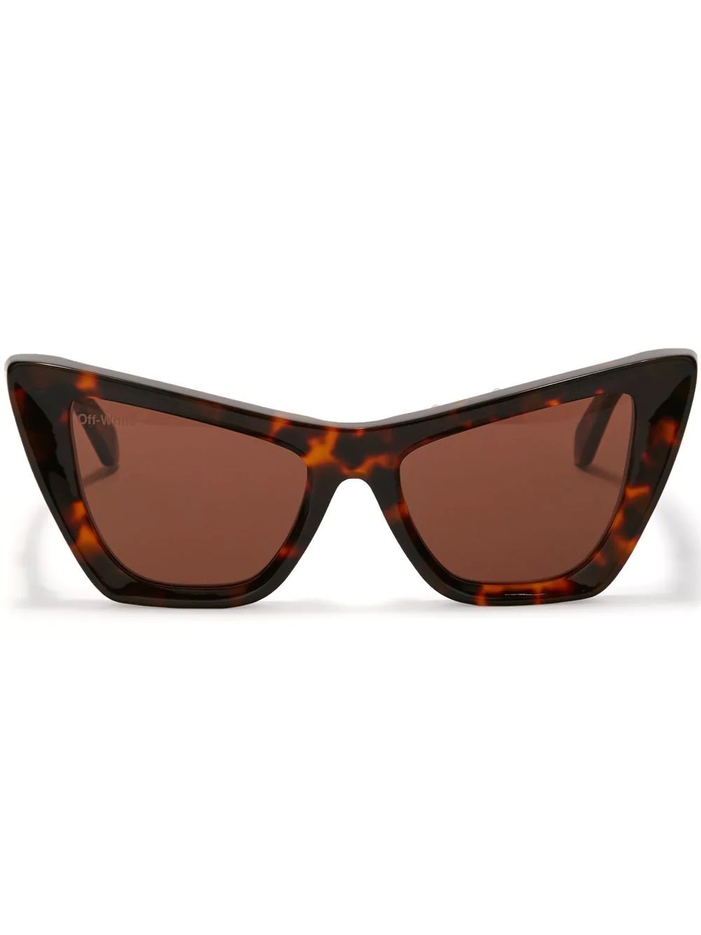 Edvard cat-eye sunglasses Defined by a geometric cat-eye frame, the Edvard sunglasses by Off-White are decorated with a tortoiseshell effect. A gold-tone Arrows plaque adds a recognisable finish to the bold design. Made in Italy Composition Acetate 100%
