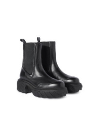 Black tractor motor leather boots. MATERIALS Lining: 100% Leather Outer: 100% Leather Sole: 100% Rubber FITTING Bust 0cm Height 0cm Hips 0cm Waist 0cm