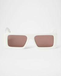 - Off-White "Troy" rectangle sunglasses in acetate - Eye/bridge/temple (in mm): 55-18-145 - Solid lenses - Saddle nose bridge - Wide, tapered arms - Classic arrow motif at the temples - Acetate - 100% UVA/UVB protection - Made in Italy - Proposition 65 warning for California residents