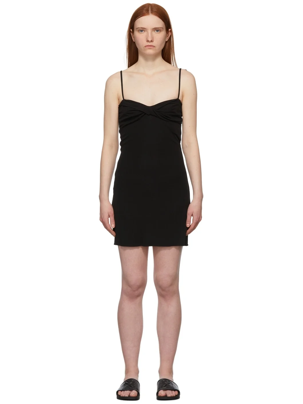 Sleeveless viscose jersey short dress in black featuring knotted detailing at sweetheart neckline. Self-tie spaghetti straps. Supplier color: Black no color 100% viscose.