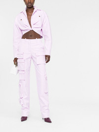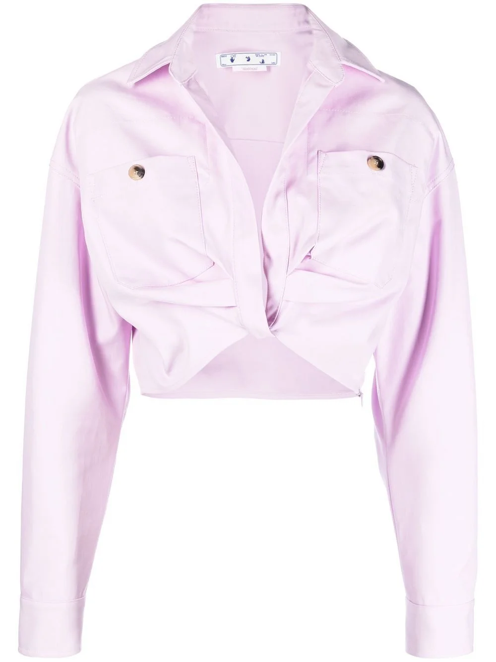twisted-front cropped cotton jacket A modern take on a utilitarian silhouette, this jacket showcases how Off-White continuously evolves and reinvents its signature styles. The lilac-hued cropped jacket stands out with its twisted front. Made in Italy Composition Outer: Cotton 83%, Polyamide 17% Lining: Cotton 100% SIZE & FIT Model measurements Height 5 ft 11 in(1.8 m) Bust/Chest 32.67 in(83 cm) Hips 36.22 in(92 cm) Waist 24.4 in(62 cm) FittingInformation This piece fits true to size. We recommend you get your regular size Cut for a slim fit Made with a mid-weight non-stretch fabric Washing instructions Dry Clean Only