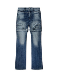These 100% denim cotton jeans have a flared leg and faded patches to the dark wash. An upside-down waistband detail features at the thighs. Made in Italy. MATERIALS 100% Cotton FITTING Model Diara Wade wears size 26 Height: 5’ 11" (180 cm) Waist: 24” (62 cm) Hips: 34” (88 cm)