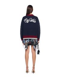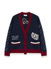 Crafted from premium jacquard knit, this varsity cardigan by Off-White™ merges urban sophistication with distinctive design elements. - Signature jacquard knit construction - Button-down front fastening - Contrasting ribbed trims - Embroidered logo on chest and back - Diagonal stripe accents on sleeves - Functional front pockets - Made in Italy DETAILS - Material: 100% Wool - Code: OWHB04GF25KNI0014801