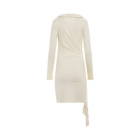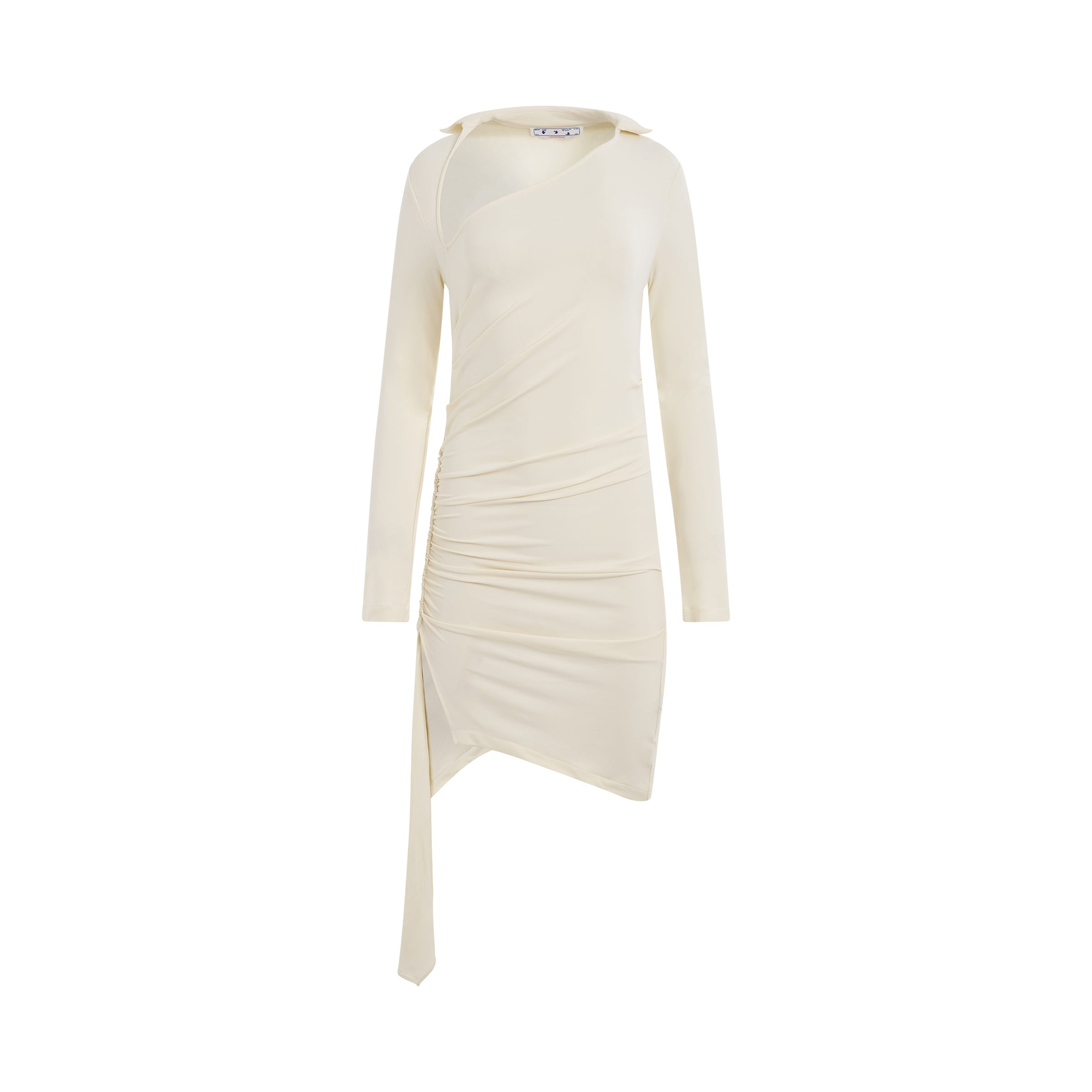Off-White asymmetric ruched minidress showcases a modern and edgy take on a classic silhouette. Crafted from jersey fabric, this dress offers a comfortable and figure-flattering fit. The dress features a neutral white palette, allowing the attention to be drawn to its striking ruched construction. The ruching adds texture and visual interest to the design, creating a dynamic and eye-catching effect. With its asymmetric neckline, this dress exudes a contemporary and fashion-forward vibe. The asymmetry adds an element of uniqueness and adds to the overall edgy aesthetic of the garment. One of the standout features of this dress is the elongated draped detailing at the hem. This adds an extra touch of drama and movement to the dress, elevating its overall design and creating a visually striking silhouette. • Composition: Viscose 95%, Elastane 5% • Long sleeves • Asymmetric neckline • Draped detailing at hem • Ruched construction • Side curl SKU: OWDB460S23FAB0010400