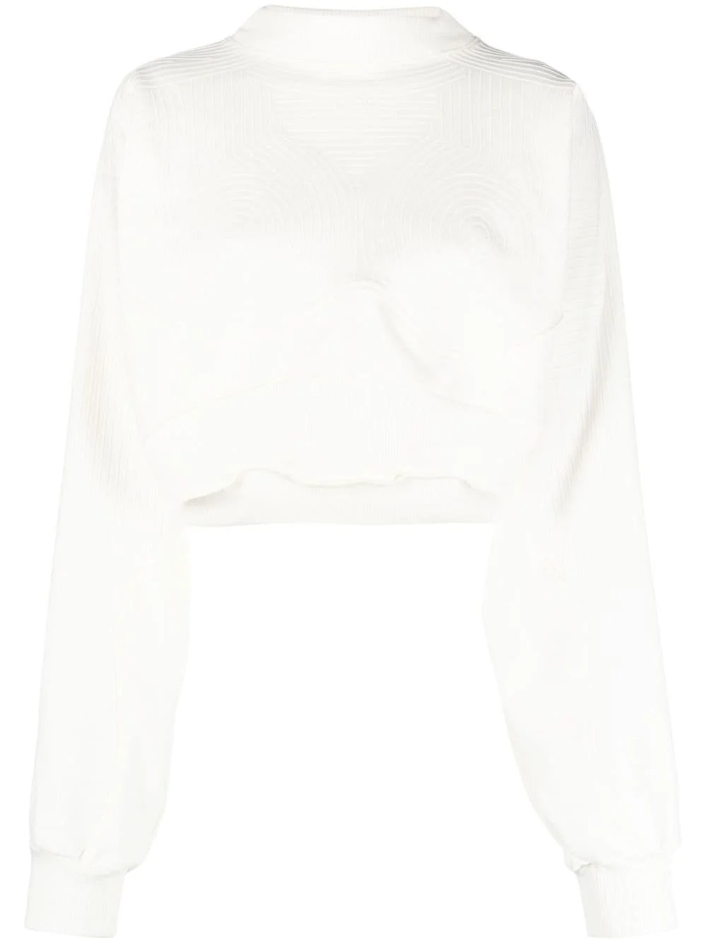 Vortix Cor cropped sweatshirt Contoured separates take centre stage at Off-White for AW23, as evidenced by this white cotton sweatshirt. It’s cut to a cropped silhouette and embossed with vortex-inspired lines that speak to the collection’s conceptual mood. Highlights - Off-white - Cotton - Embossed detail - Crew neck - Long sleeves - Cropped Made in Italy Composition Cotton 100% SIZE & FIT Model measurements Height 5 ft 10 in(1.78 m) Bust/Chest 31.49 in(80 cm) Hips 35.03 in(89 cm) Waist 23.62 in(60 cm) FittingInformation Designed for an oversized fit, offering additional room throughout Cropped in length Made from a midweight non-stretch fabric, this piece offers minimal elasticity when worn This piece fits true to size – take your usual size Washing instructions Hand Wash