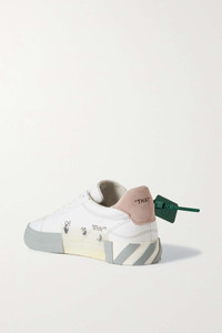 EDITORS'NOTES Detailed with the brand's signature arrow motif, Off-White's low-top sneakers are made from breathable canvas and soft suede. They're set on striped, bouncy vulcanized rubber soles and feel super comfortable. Fans of the late, great Virgil Abloh will instantly recognize the iconic tag and quotation marks on the heels. SIZE & FIT - DETAILS & CARE - Rubber sole measures approximately 30mm/ 1 inch - White canvas, pink and black suede (Cow) - Lace-up front Small to size. See Size & Fit notes.