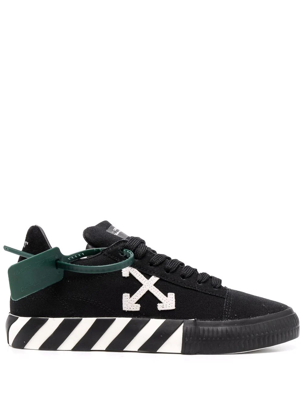 Low Vulcanized logo-appliquéd rubber-trimmed textured-leather sneakers