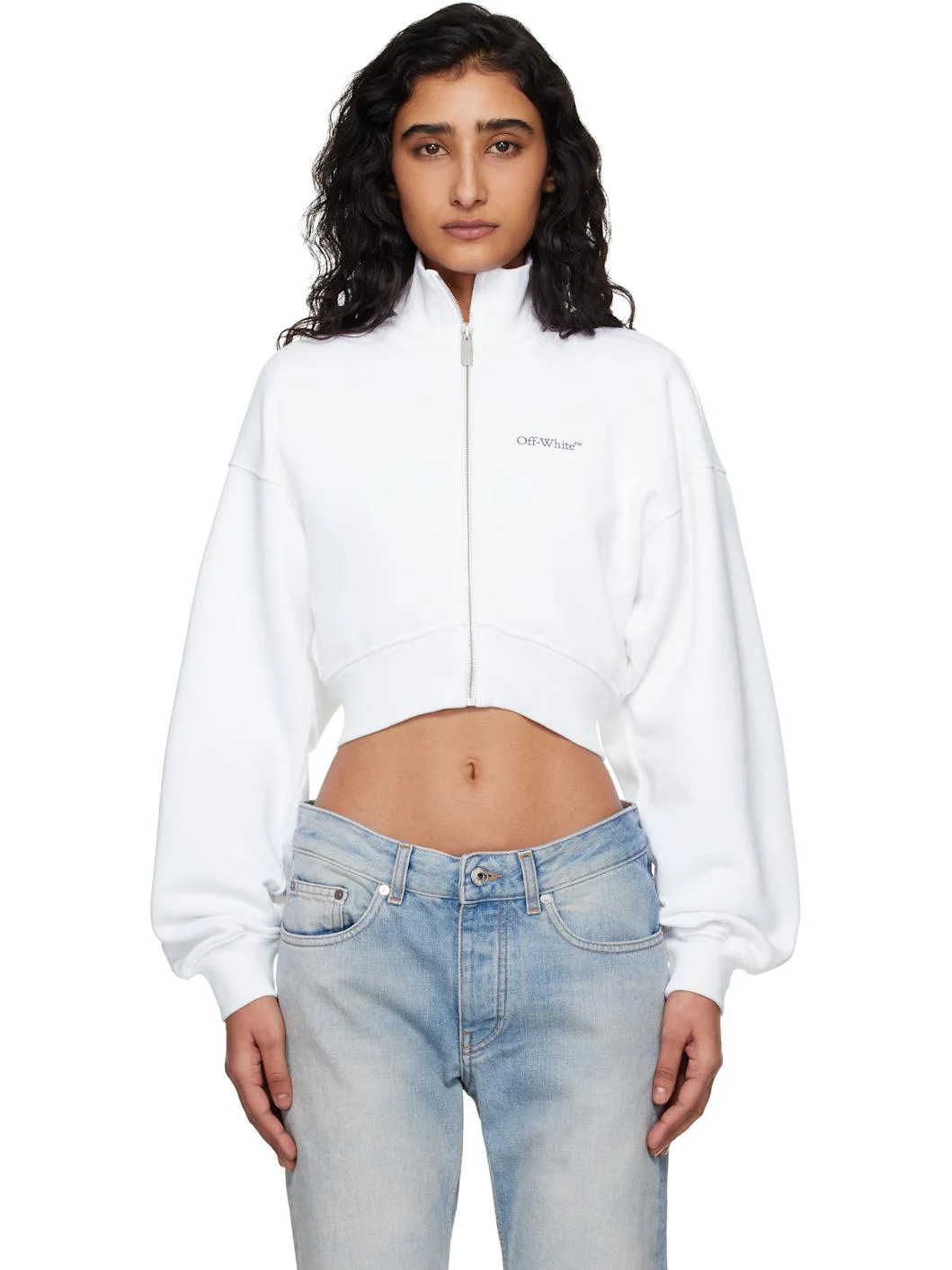 Cotton jersey jacket. · Rib-knit stand collar, hem, and cuffs · Zip closure extends to collar · Logo printed at chest · Cropped hem · Dropped shoulders · Logo graphic printed at back Supplier color: White night 100% cotton. Made in Portugal 261607F063000