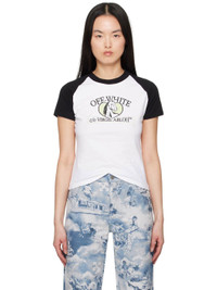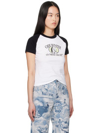 Cotton jersey T-shirt. · Rib-knit crewneck · Logo graphic printed at front · Raglan sleeves Supplier color: White/Black 100% cotton. Made in Portugal 251607F110002