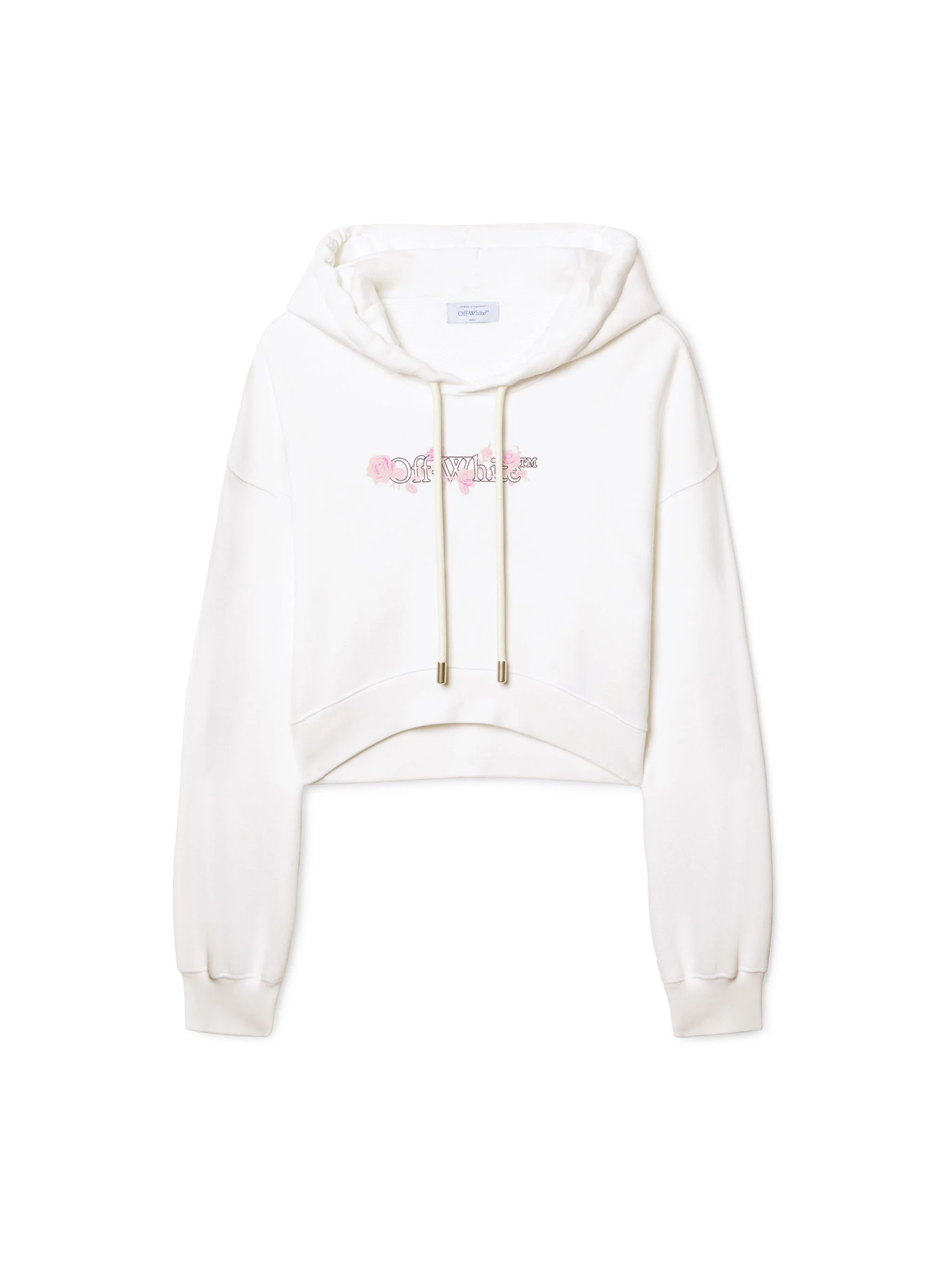This 100% cotton hoodie features a large bookish logo with roses. Cropped fit. DETAILS - BETTY WEARS SIZE S HEIGHT: 5' 9” (179 CM) BUST: 30” (76 CM) WAIST: 24“ (60 CM) HIPS: 34” (87 CM) - Materials:Cotton 100% - Code: OWBB056S25FLE0010101