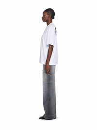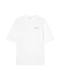 Crafted from premium cotton, this Half Arrow Skate Tee embodies Off-White™'s urban aesthetic with a bold rear graphic and refined front logo detail. - Short-sleeve cotton tee with distinctive rear graphic - Crew neck design for a clean silhouette - Signature Off-White™ logo on the front chest - Boxy fit enhancing a modern streetwear style - Made with high-quality materials for lasting wear DETAILS - Material: 100% Cotton, Rib Details: 5% Elastane 95% Cotton - Code: OWAA13FF25JER0040110