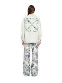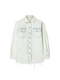 This 100% cotton denim shirt-jacket features a small bookish logo on the front and a large fresco print arrow on the reverse. Made in Italy. DETAILS - JUNI WEARS SIZE 38 HEIGHT: 5' 7” (176 CM) BUST: 28” (73 CM) WAIST: 23“ (60 CM) HIPS: 35” (89 CM) - Materials:Cotton 100% - Code: OWYQ004S25DEN0014001