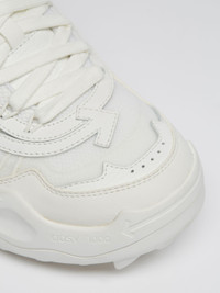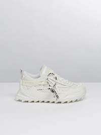 White ODSY-1000 sneakers. Sculpted rubber sole. Tonal lace-up closure. Round toe. White industrial pull-loop at heel collar. Zip tie attached. MATERIALS Outer: 100% Calf Leather Outer: 100% Polyester Lining: 100% Polyester Sole: 100% Rubber FITTING Bust 0cm Height 0cm Hips 0cm Waist 0cm