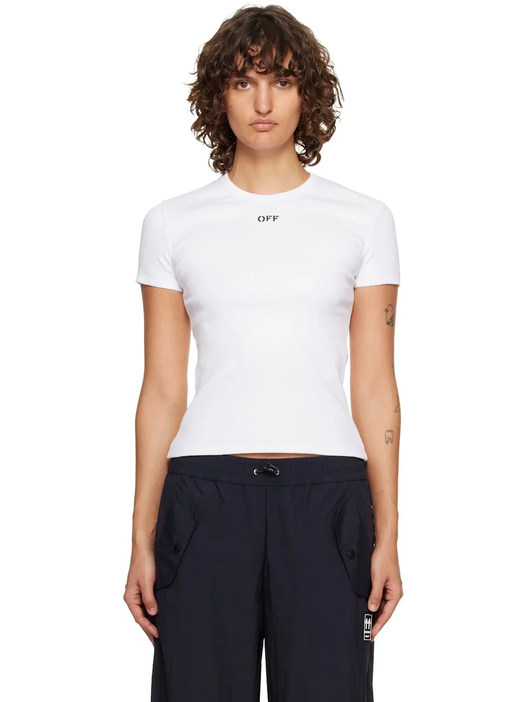 White Off Stamp Rib Basic T-shirt