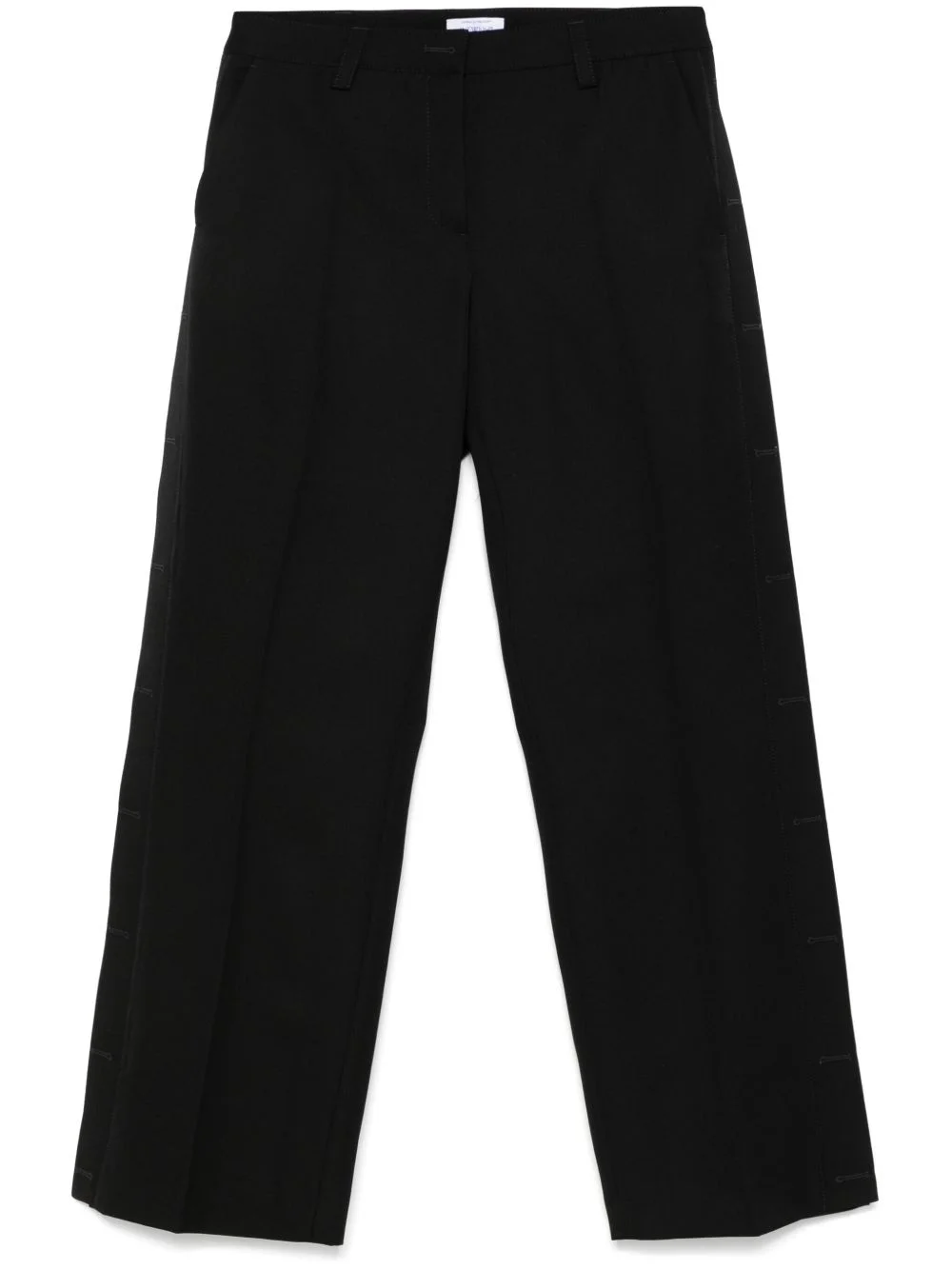 wide trousers Highlights - Black - Front button and zip fastening - Belt loops - Two side slash pockets - Two rear jetted pockets Made in Italy Composition Lining: Viscose 100% Outer: Virgin Wool 100% SIZE & FIT Model measurements Height 5 ft 10 in(1.78 m) Bust/Chest 33.85 in(86 cm) Hips 36.61 in(93 cm) Waist 26.77 in(68 cm) FittingInformation Designed with a wide-leg cut, these trousers allow for a close fit at the waist and offer a loose and roomy fit over the leg Made from a midweight non-stretch fabric