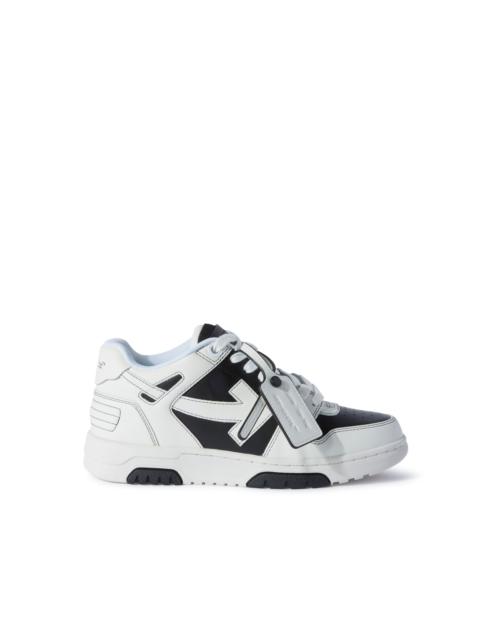 <p>The Out Of Office sneakers in smooth leather exhibit a contemporary silhouette with signature text detailing and urban-inspired design elements.</p><ul type="circle"><li>Round toe with classic lace-up fastening</li><li>Signature "FOR WALKING" text motif at sides</li><li>Debossed branding on tongue and heel tab</li><li>Lightweight rubber sole for superior comfort</li><li>Perforated detailing enhances breathability</li><li>Textured outsole ensures optimal traction</li><li>Iconic Zip Tie tag accent</li></ul> DETAILS - Lining: 15% Polyester 85% Recycled polyester, Sole: 100% Rubber, Upper Shoe: 11% Recycled polyester 89% Bovine Leather - Code: OWIA259C99LEA0190110