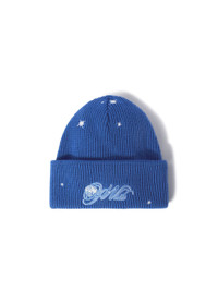 Blue beanie featuring blue and white Off-White logo and lunar stamp at front. White stars details at side. MATERIALS 100% Wool FITTING Bust 0cm Height 0cm Hips 0cm Waist 0cm