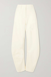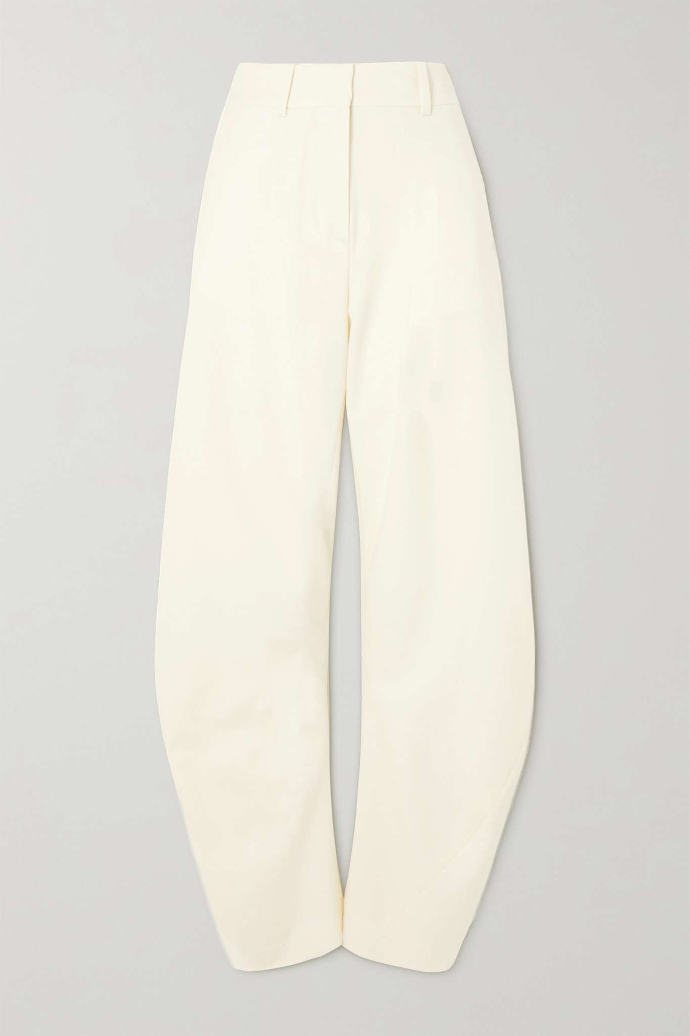 EDITORS'NOTES Distinctive designs are at the core of Off-White's collections. These pants are cut with a curved banana shape for a sculptural effect that twists around to taper neatly at the ankle. Style yours with square-toe sandals. SIZE & FIT - Fits large to size, take one size smaller than normal - High-rise, cut for a straight-leg fit - Mid-weight, slightly stretchy fabric - Model is 180cm/ 5’11” and is wearing an IT 38 DETAILS & CARE - White polyester, wool and elastane-blend - Concealed hook and zip fastening at front - 53% polyester, 43% wool, 4% elastane; lining: 100% cotton - Dry clean Large to size. See Size & Fit notes.
