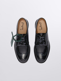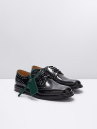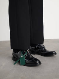 The classic derby Shannon style is made by shiny polish binder black leather, embellished with designed scissors stretches, with iconic Off-White™ elements such as laces and leather tag. MATERIALS Outer: 100% Calf Leather Lining: 100% Calf Leather Sole: 100% Calf Leather FITTING Bust 0cm Height 0cm Hips 0cm Waist 0cm