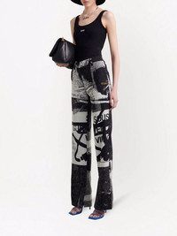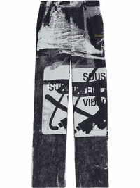 x Pablo Tomek double straight trousers Named Laboratory of Fun, this AW21 collection from Off-White comes with an aesthetically linear and structure-driven approach, reflecting Abloh’s training as an architect. Constructed from wool-blend, these trousers come with a graffiti pattern and straight leg and are part of the collaboration with Pablo Tomek. Made in Italy Composition Outer: Virgin Wool 48%, Polyamide 48%, Polyester 16% Lining: Polyester 100%