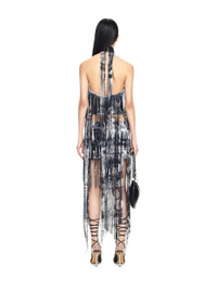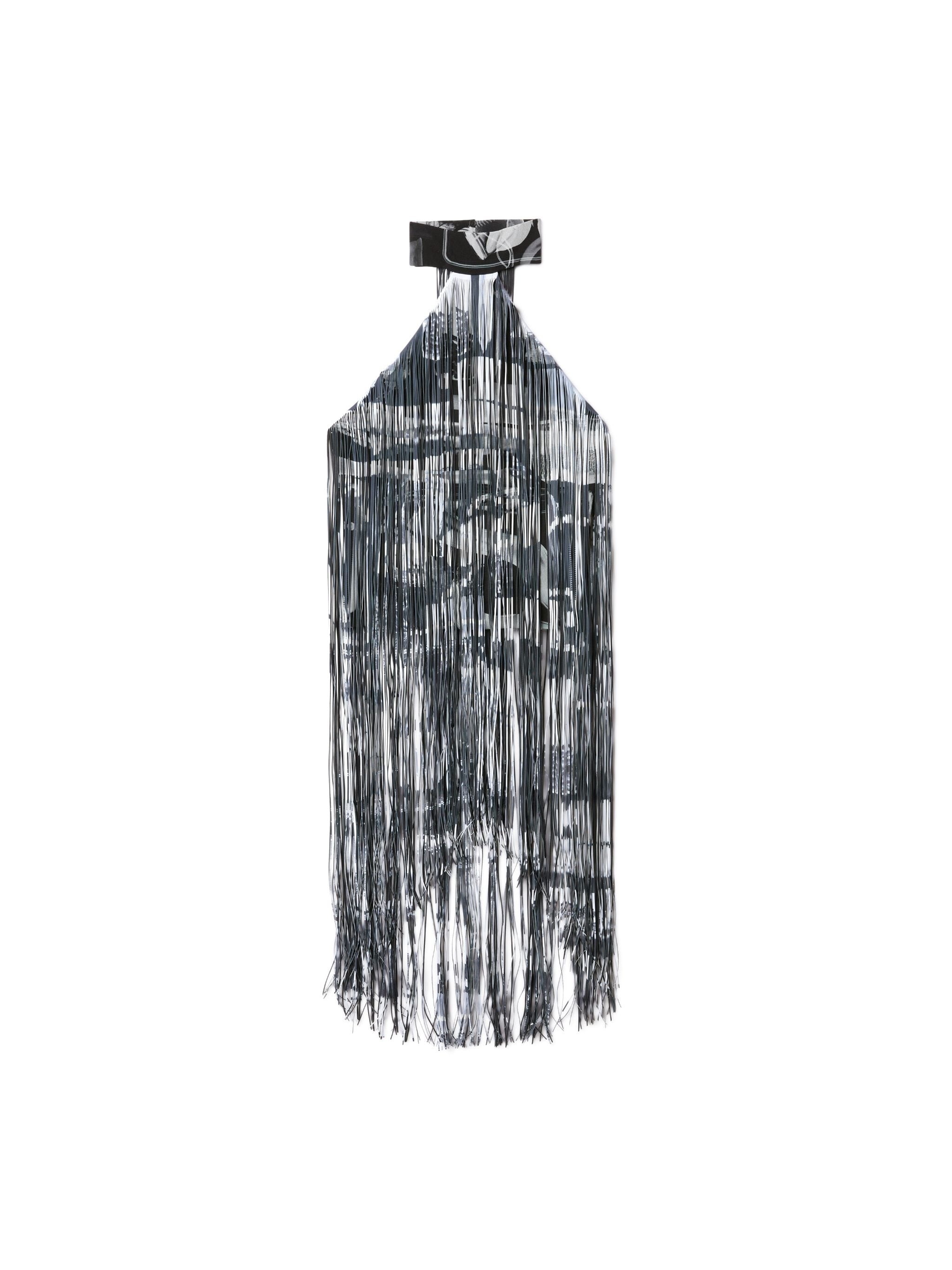 This slim fit halter-neck top features dramatic fringing with an x-ray print. Made in Italy. MATERIALS Outer: 5% Elastane Outer: 100% Polyamide Outer: 95% Viscose FITTING Bust 83cm Height 181cm Hips 90cm Waist 60cm