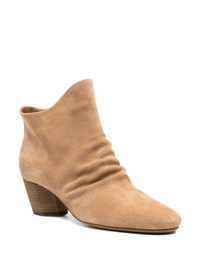 Beth 60mm suede boots beige calf leather round toe 60mm mid block heel slip-on style Made in Italy Composition Suede 100% SIZE & FIT Measurement CIRCUMFERENCE 12.2 in(31 cm) HEEL 2.36 in(6 cm) HEIGHT 3.54 in(9 cm) Washing instructions Dry Clean Only