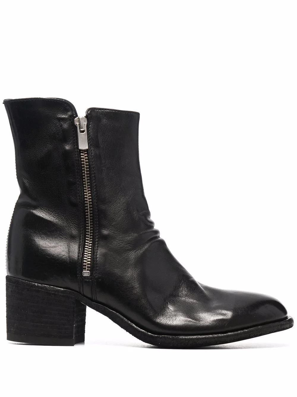 Denner 103 leather boots black leather polished finish almond toe ankle-length side zip fastening low block heel Made in Italy Composition Outer: Buffalo Leather 100% Lining: Leather 100% Sole: Leather 100% SIZE & FIT Measurement CIRCUMFERENCE 9.44 in(24 cm) HEEL 2.16 in(5.5 cm) HEIGHT 5.9 in(15 cm) Sole height 0.39 in(1 cm)