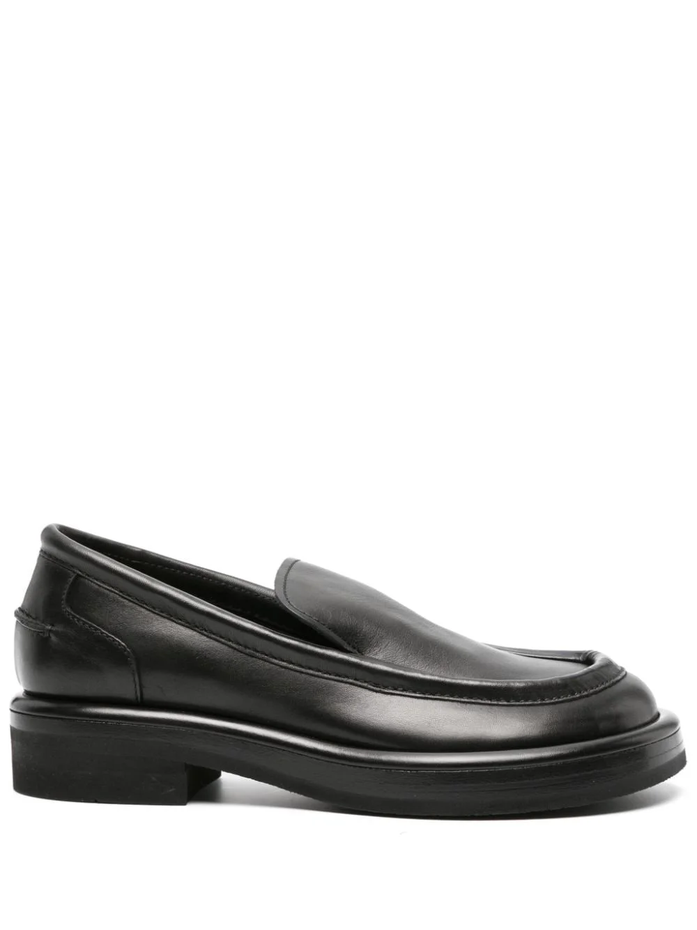 Era 009 leather loafers Highlights - Black - Calf leather - Smooth grain - Apron round toe - Slip-on style - Branded leather insole - Eva midsole - Low block heel - Rubber sole Made in Italy Composition Leather 100% SIZE & FIT Measurement HEEL 1.77 in(4.5 cm) Sole height 0.78 in(2 cm)