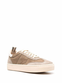 Kombined low-top sneakers elm wood/tofu leather/calf suede leather lining round toe front lace-up fastening branded insole contrasting branded heel counter flat rubber sole Made in Italy Composition Suede 100% SIZE & FIT Measurement HEEL 1.18 in(3 cm) Sole height 0.98 in(2.5 cm)